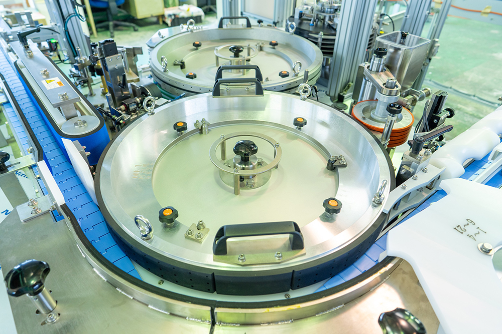 - LN-102C型(LFB型)丸い容器に2点貼り(表裏貼り)を行う型式